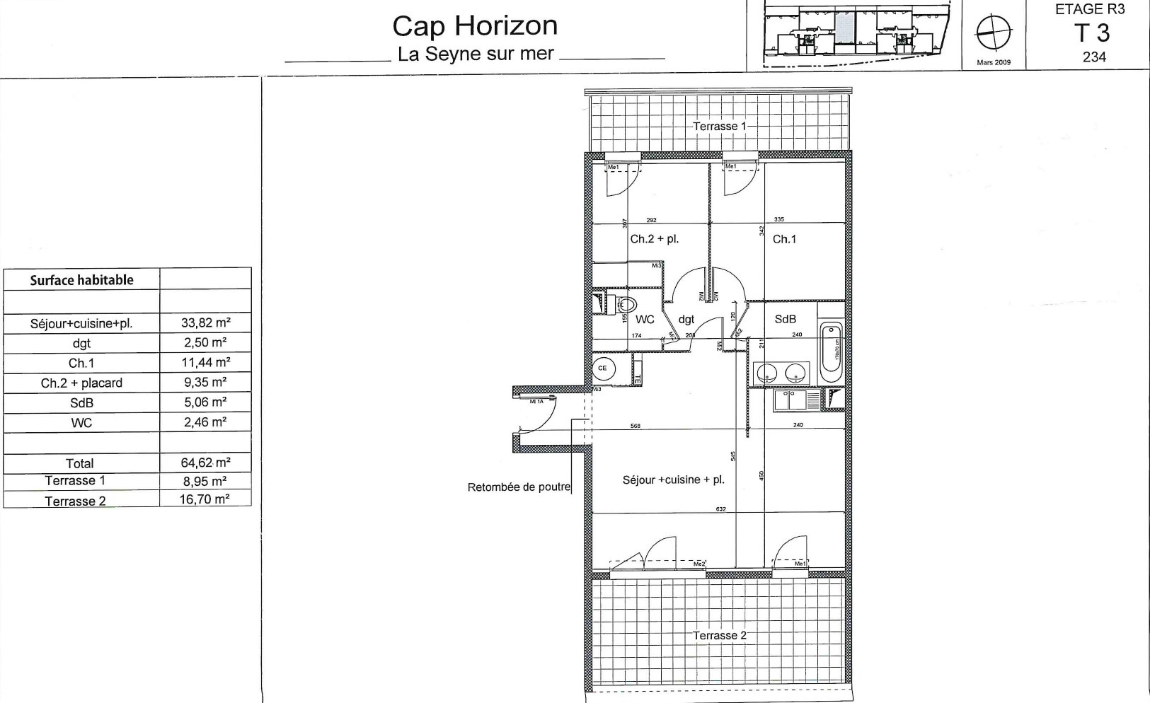 C'est dans une résidence récente et sécurisée, située entre le quartier Gai Versant et le port, que nous vous proposons à la location vide cet appartement traversant (entièrement repeint) 3 pièces de 64m2 situé au 3ème étage avec ascenseur. Il se compose d'un grand séjour lumineux avec kitchenette équipée (table de cuisson 2 feux, hotte aspirante, éléments de rangement) donnant sur une grande terrasse avec vue dégagée, 2 chambres avec balcon et vue dégagée, salle de bains, wc. Un emplacement de parking privé en sous-sol de la copropriété. Toutes commodités à proximité: gare, bus, accès autoroute, commerces... Le plus : la pièce à vivre est équipée d'une climatisation réversible pour votre confort. Loyer : 890 € CC dont 70 € de charges incluant eau froide. Dépôt de garantie: 820 € Honoraires charge locataire: 840 € Dont honoraires d'état des lieux: 193 € Dossiers étudiés sur conditions de ressources, nous consulter. Contactez Eric ROGER au 06 70 42 36 97.