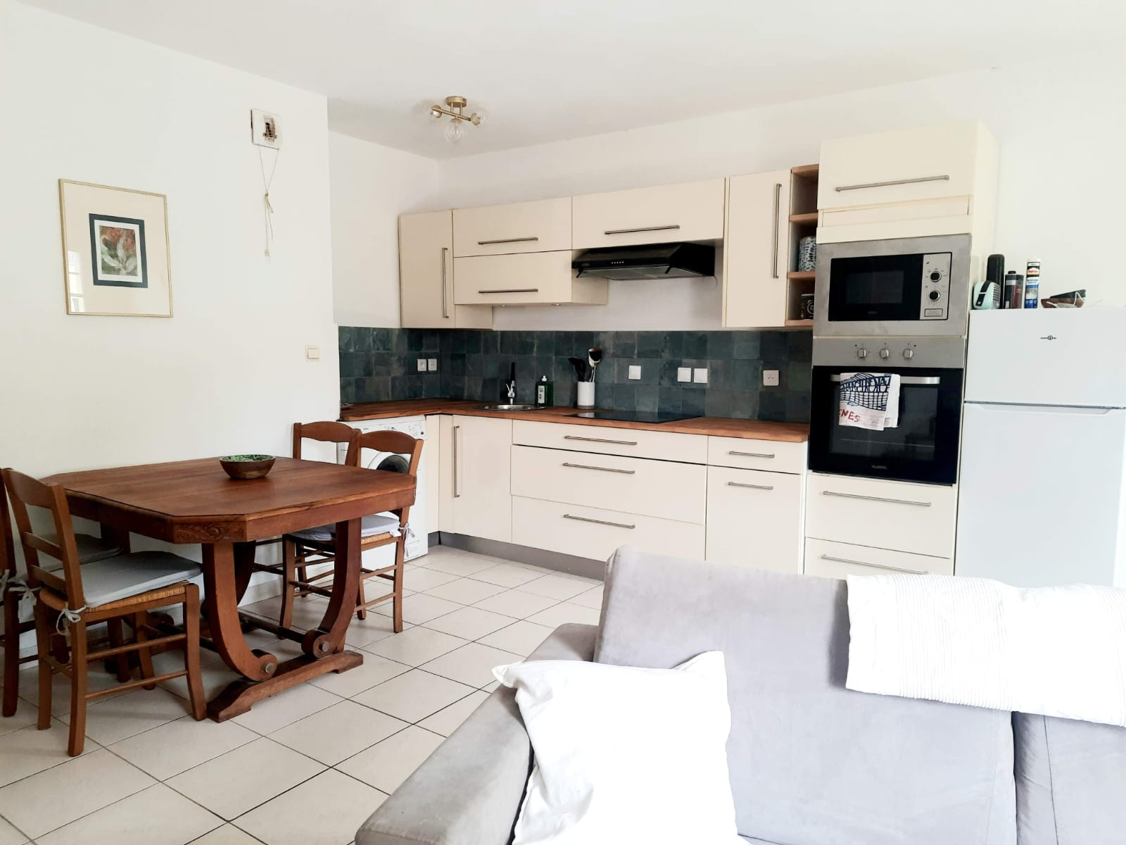 Séjour lumineux avec coin cuisine entièrement équipé