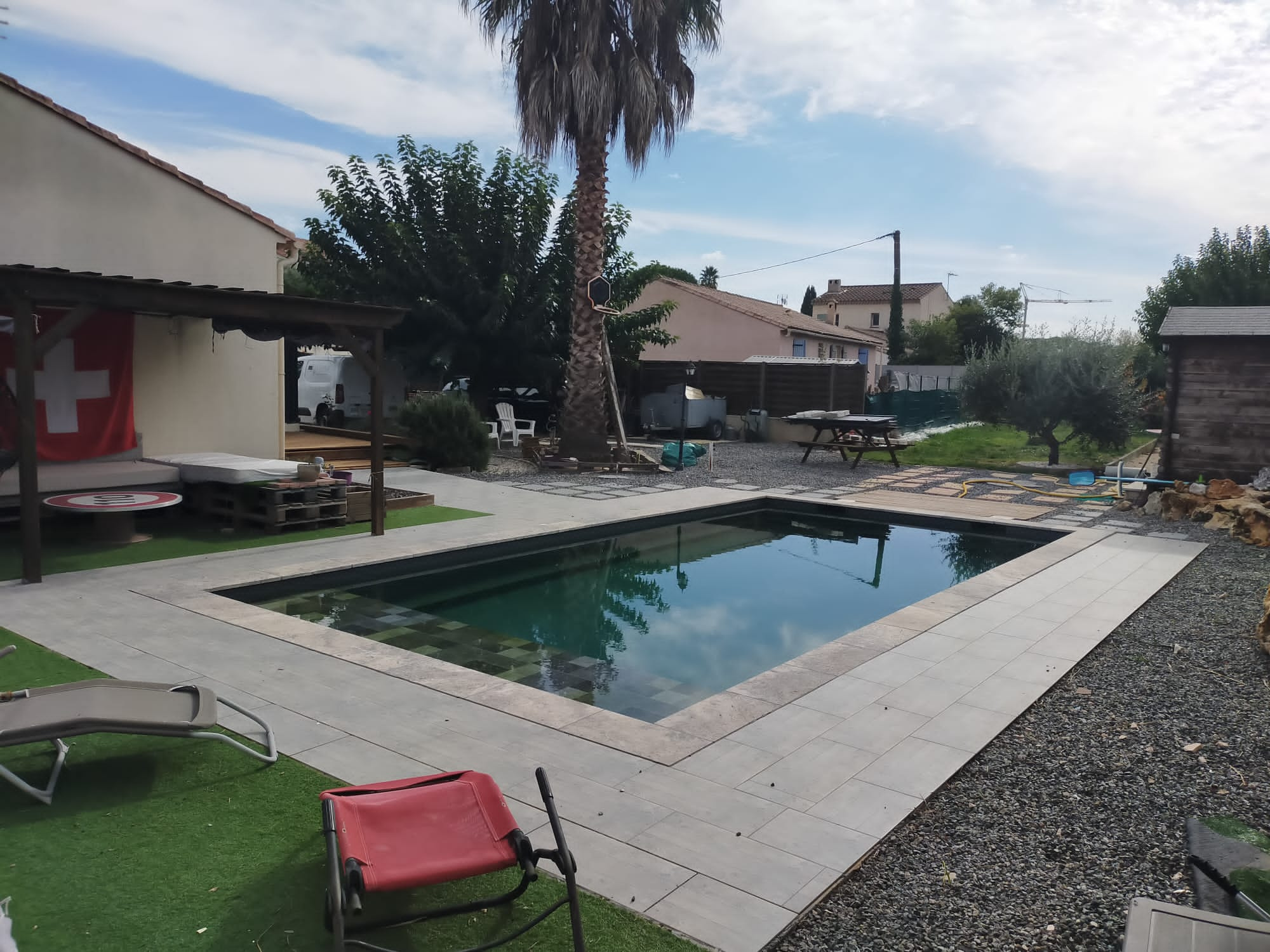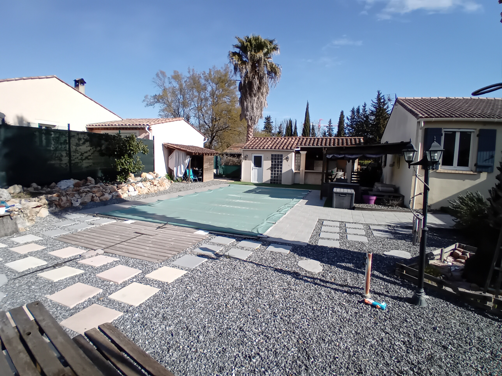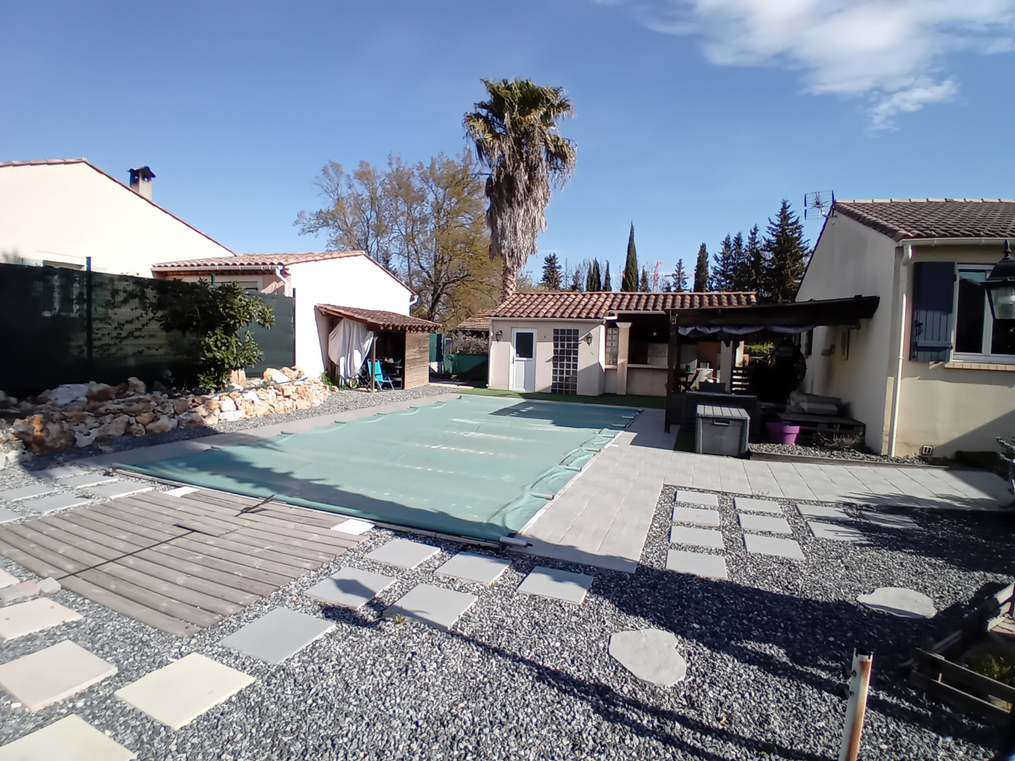 L'agence MIRALLES Immo vous propose à la location, une belle maison individuelle de plain-pied d'environ 95m2 comprenant une grande pièce à vivre avec cuisine ouverte, 3 belles chambres, une salle d'eau, un WC séparé, une grande véranda avec volets roulants électriques. A l'extérieur, vous profiterez d'une grande piscine, d'un terrain de pétanque, d'un jardin, d'une cuisine d'été et d'un carport pour vos voitures. Idéalement située et au calme. Loyer : 1550,00€ dont 45,00€ de charges (TOM) Dépôt de garantie : 1505,00€ Honoraires d'agence : 1055,45€ dont 287,85€ d'état des lieux. Mme MENET 06 73 07 89 82 sabine.menet@miralles-immo.fr