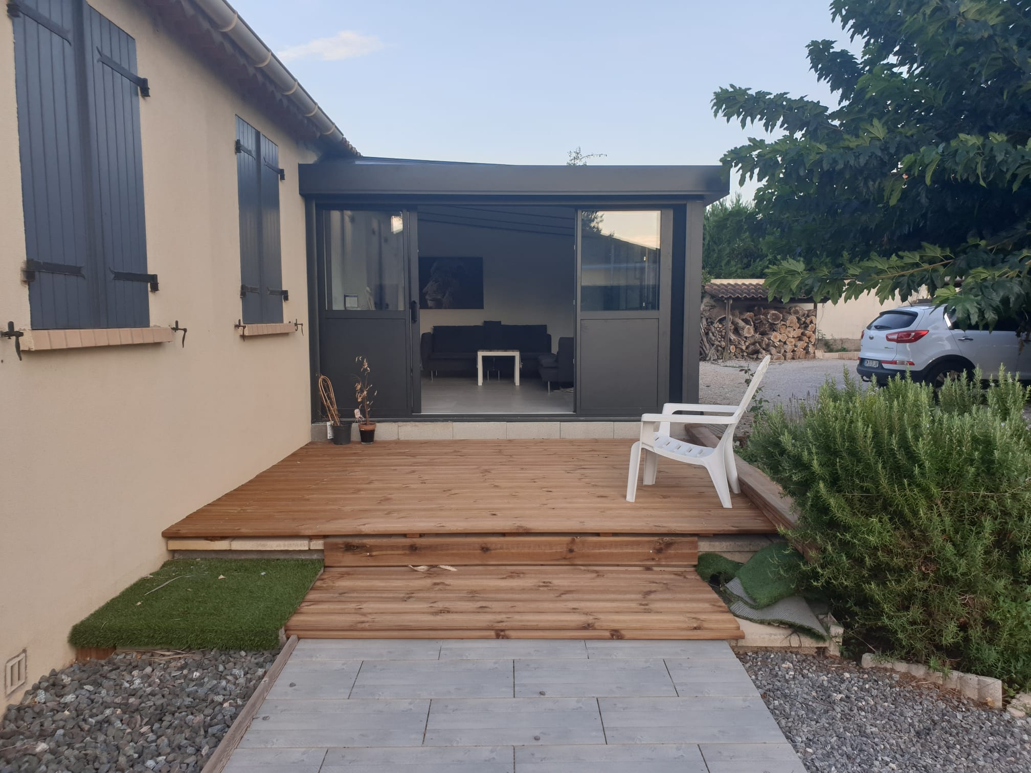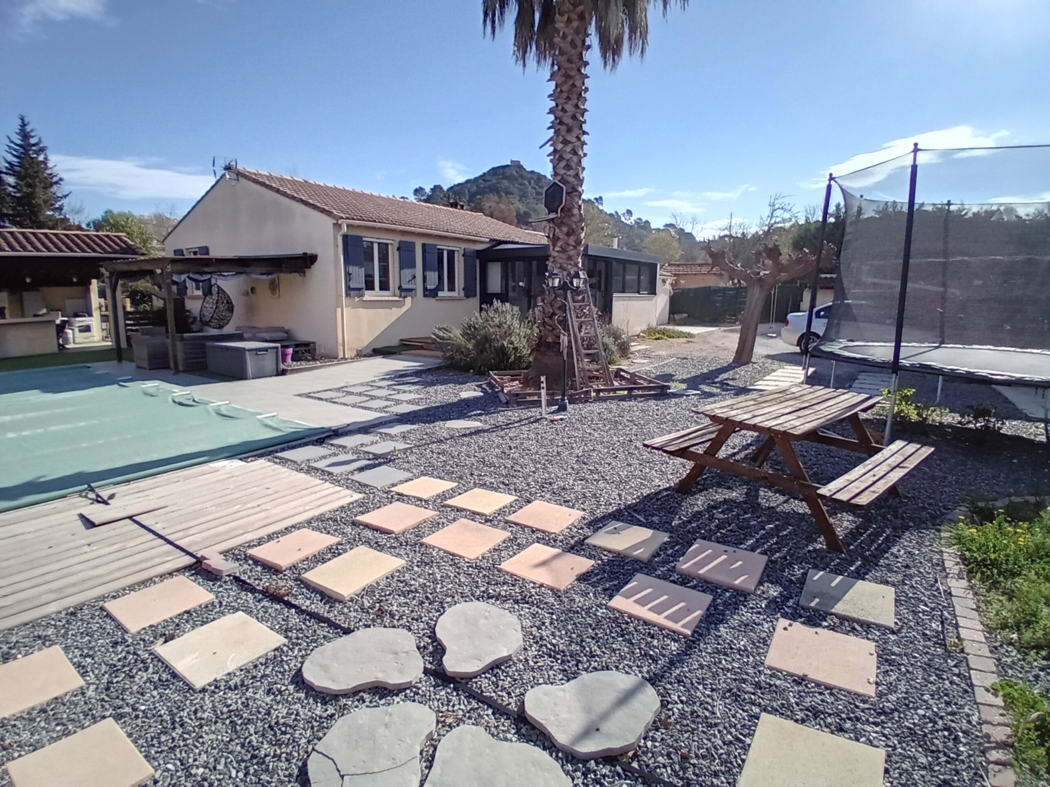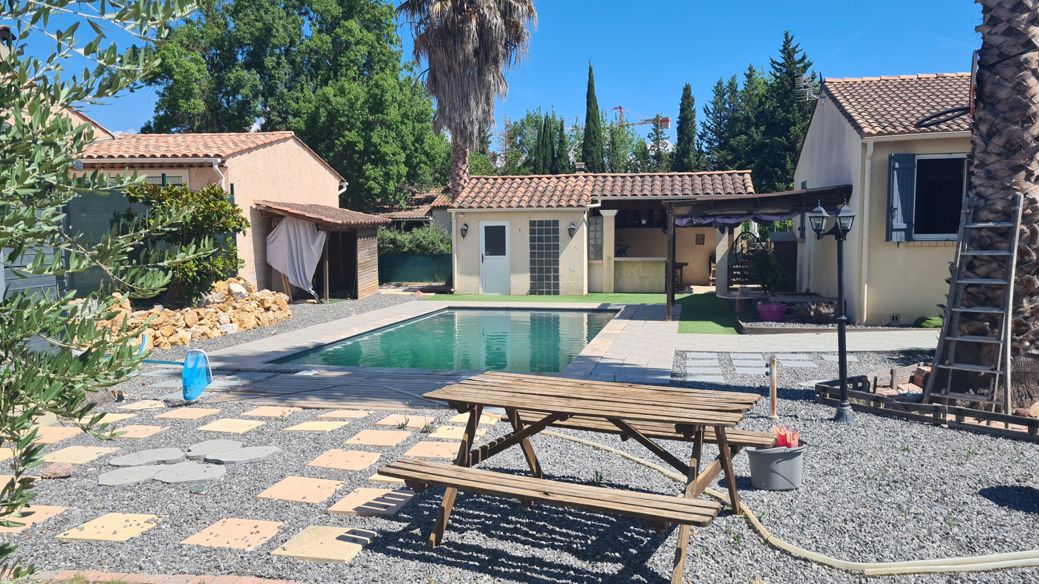 L'agence MIRALLES Immo vous propose à la location, une belle maison individuelle de plain-pied d'environ 95m2 comprenant une grande pièce à vivre avec cuisine ouverte, 3 belles chambres, une salle d'eau, un WC séparé, une grande véranda avec volets roulants électriques. A l'extérieur, vous profiterez d'une grande piscine, d'un terrain de pétanque, d'un jardin, d'une cuisine d'été et d'un carport pour vos voitures. Idéalement située et au calme. Loyer : 1550,00€ dont 45,00€ de charges (TOM) Dépôt de garantie : 1505,00€ Honoraires d'agence : 1055,45€ dont 287,85€ d'état des lieux. Mme MENET 06 73 07 89 82 sabine.menet@miralles-immo.fr