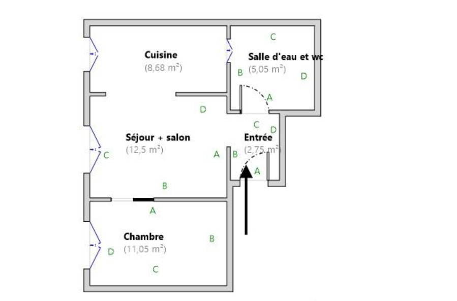 L’appartement se compose d’une entrée desservant une pièce de vie conviviale de 21 m2 avec séjour et cuisine ouverte, d’une salle d’eau fonctionnelle, ainsi que d’une chambre de 11 m2 bénéficiant d’un grand dressing.