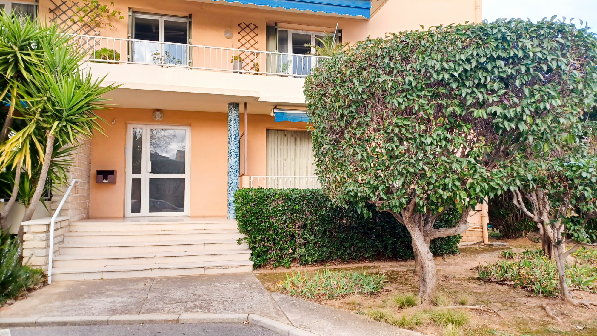 La résidence, calme et bien entretenue, jouit d’un emplacement privilégié à proximité immédiate des commerces, des transports et des plages. Cet appartement requiert une actualisation pour être remis au goût du jour, mais offre un beau potentiel.