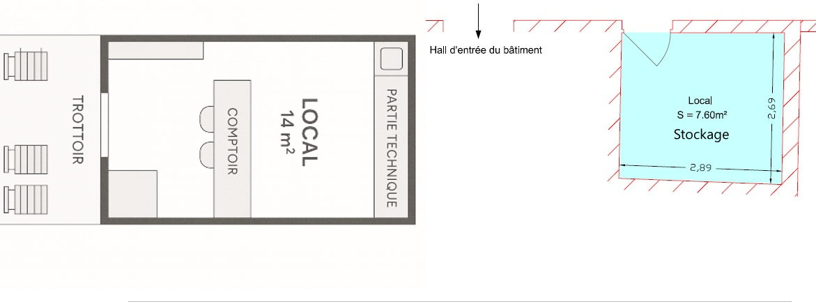 Au centre-ville du Beausset, murs commerciaux, local de 14m2 + remise indépendante de 7,60m2.