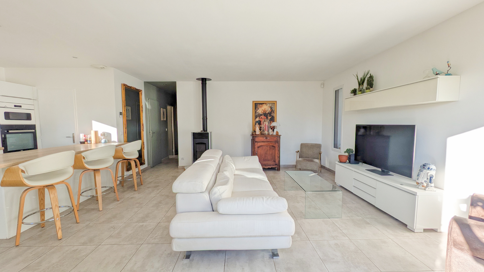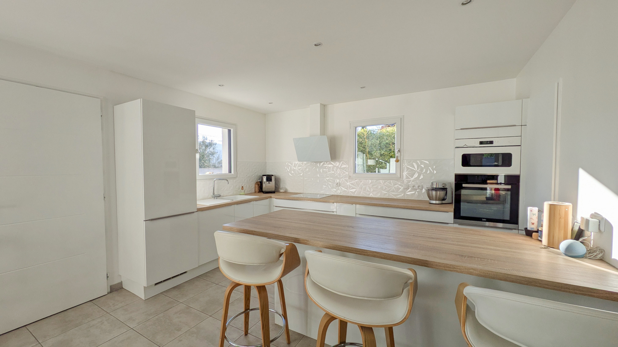 Confort, luminosité, performances énergétique, esthétique...Développant un peu plus de 86m2 entièrement de plain-pied, elle se compose d'une belle pièce à vivre, séjour de près de 40m2 avec cuisine ouverte équipée (et arrière-cuisine/buanderie) donnant directement sur la terrasse et la piscine, exposition plein sud pour un ensoleillement optimal. Vous apprécierez les trois belles chambres de 12m2 avec leur placard intégré, la salle de bains fonctionnelle avec baignoire + douche à l'italienne. Wc séparé.