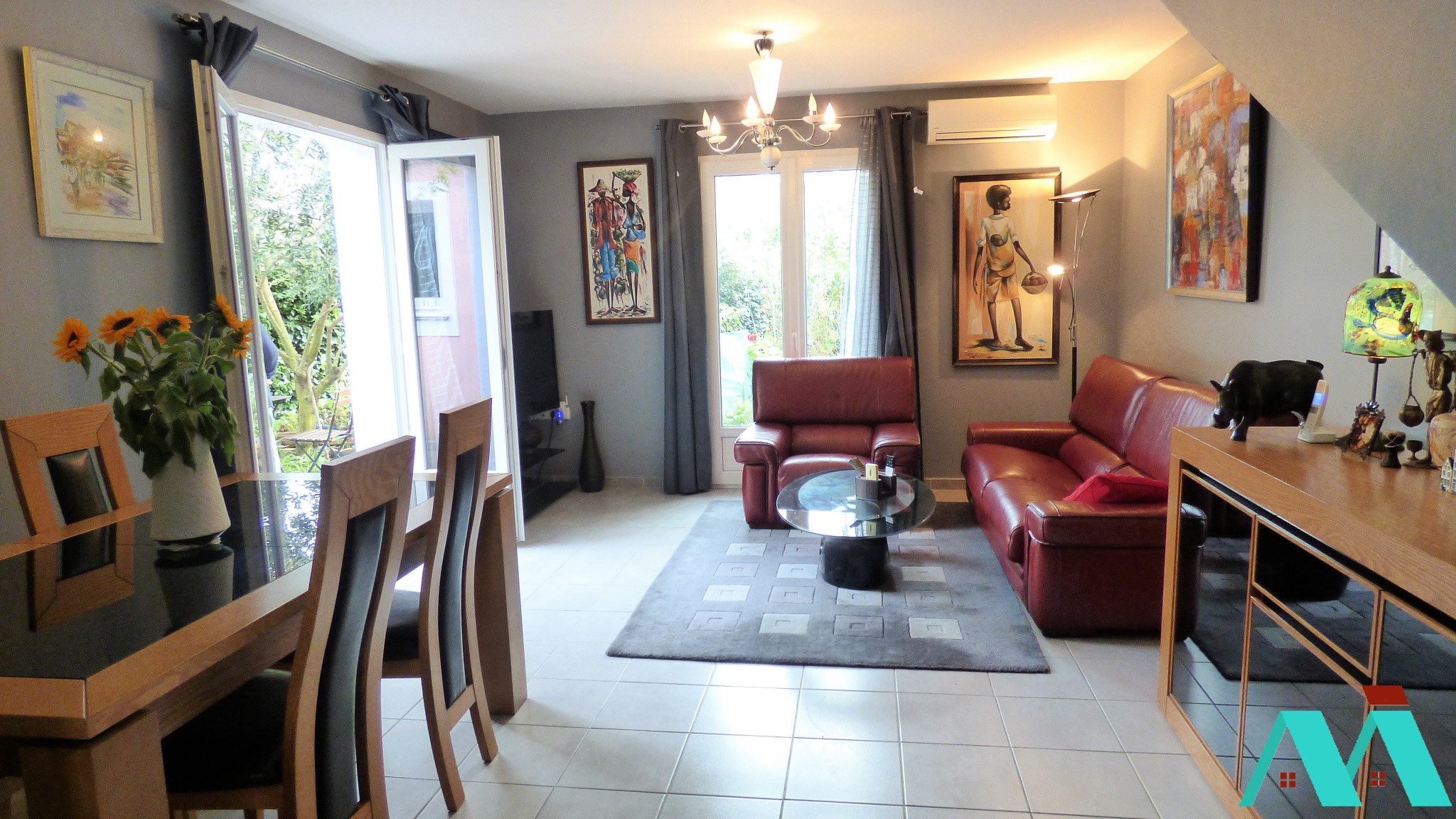 C'est au bout d'une impasse, dans une rue calme et proche de toutes commodités que nous vous proposons à la vente cette maison individuelle mitoyenne par un côté, totalisant environ 81 m2 habitable. En plain-pied la maison est composée, d'un séjour/salle-à-manger avec cuisine ouverte et équipée donnant accès au garage, et un cabinet de toilettes. A l'étage, vous trouverez trois chambres (dont deux avec placard), un dressing, une salle de bains et un cabinet de toilettes. La maison dispose d'un extérieur de 64 m2 sans aucun vis à vis. Pour votre confort: environnement calme, climatisation réversible, menuiserie PVC double vitrage, place de stationnement privative et garage. Aucun travaux à prévoir. Coup de coeur assuré !