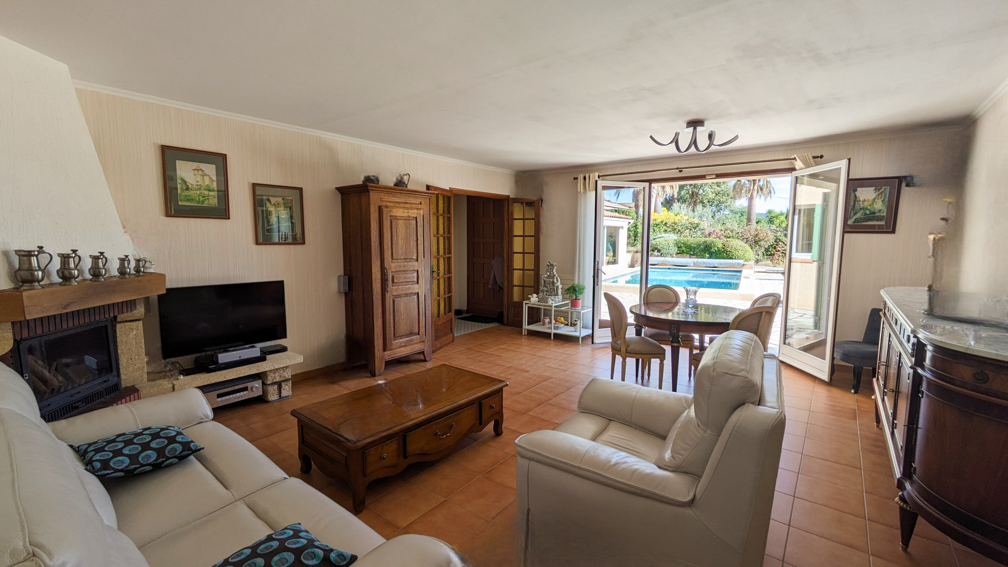 Développant environ 107m2 habitables pour sa partie principale, elle offre de nombreux atouts. Entièrement de plain-pied, la maison se compose d'une entrée desservant le séjour avec cheminée, ainsi que quatre chambres, salle d'eau fonctionnelle et wc séparé. La cuisine indépendante, tout comme le séjour, est baignée de soleil et ouvre directement sur la grande terrasse organisée comme un patio, la jolie piscine traditionnelle et le pool-house de 20m2.