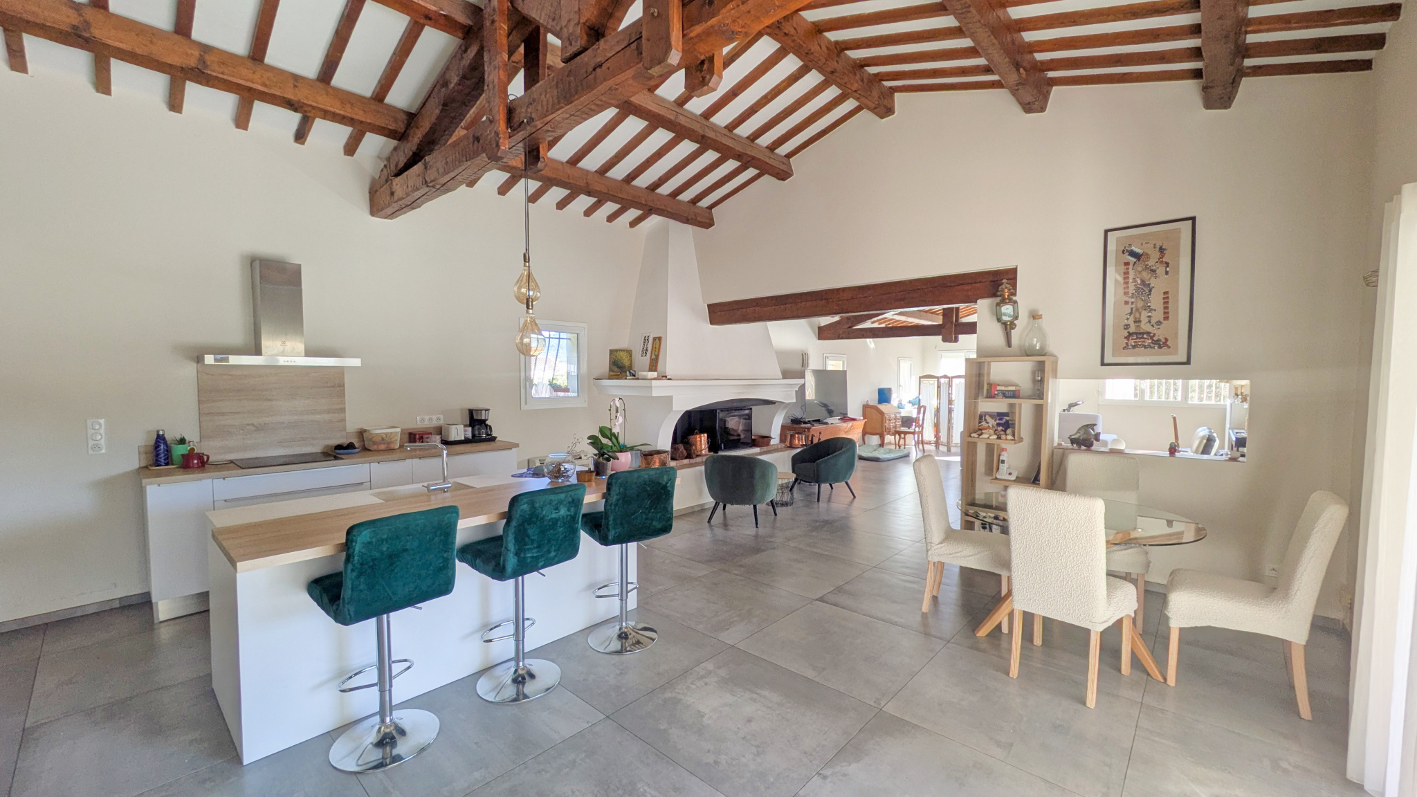Vous serez immédiatement séduits par l’immense pièce de vie baignée de lumière de plus de 80m2, intégrant une cuisine américaine entièrement équipée. Une superbe cheminée avec insert et un plafond cathédrale donnent tout son caractère à cet espace et apportent une ambiance chaleureuse. Un cellier / buanderie complète très utilement cet ensemble.