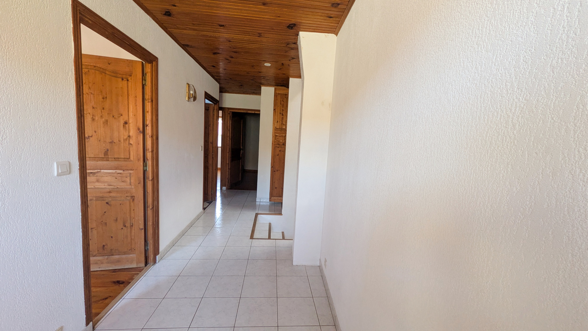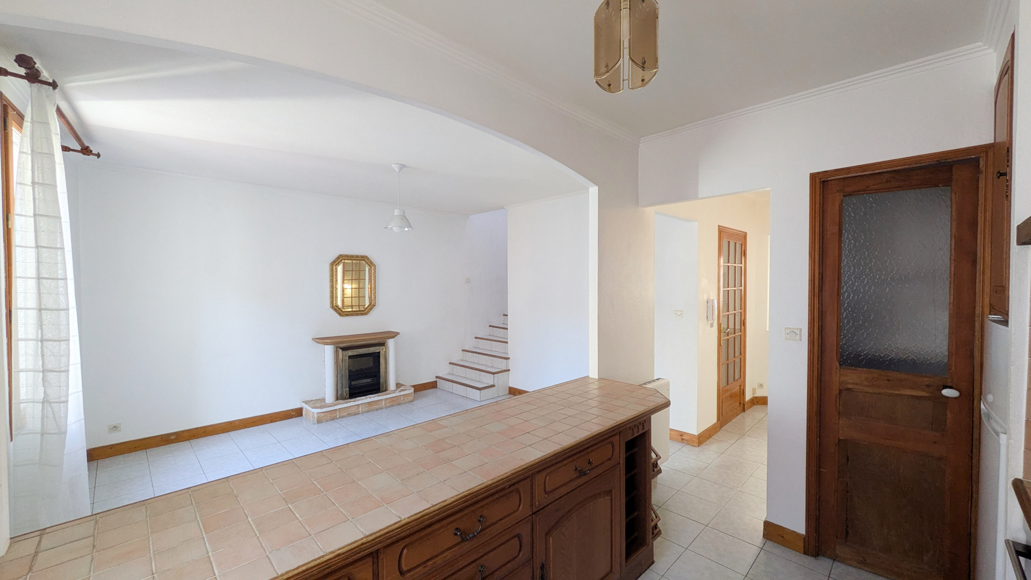 Le T5 : au 1er niveau, deux belles pièces de vie, séjour avec cheminée, salle à manger avec cuisine ouverte. A l'étage supérieur, trois belles chambres, salle de bains et wc.