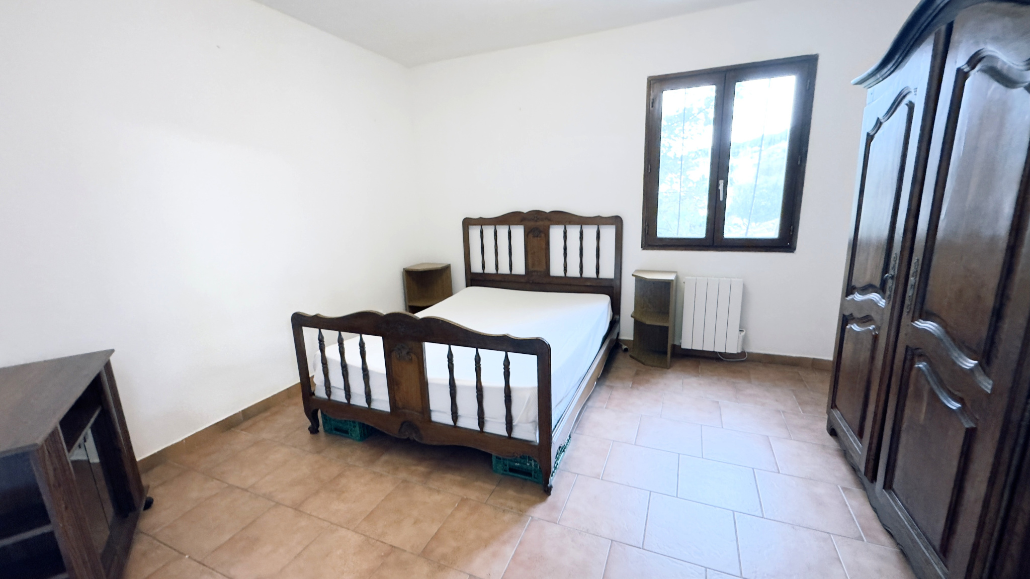 À l’étage, un appartement de type 3 libre de toute occupation, composé d’une cuisine indépendante, d’un séjour avec cheminée et de deux chambres, salle d'eau.