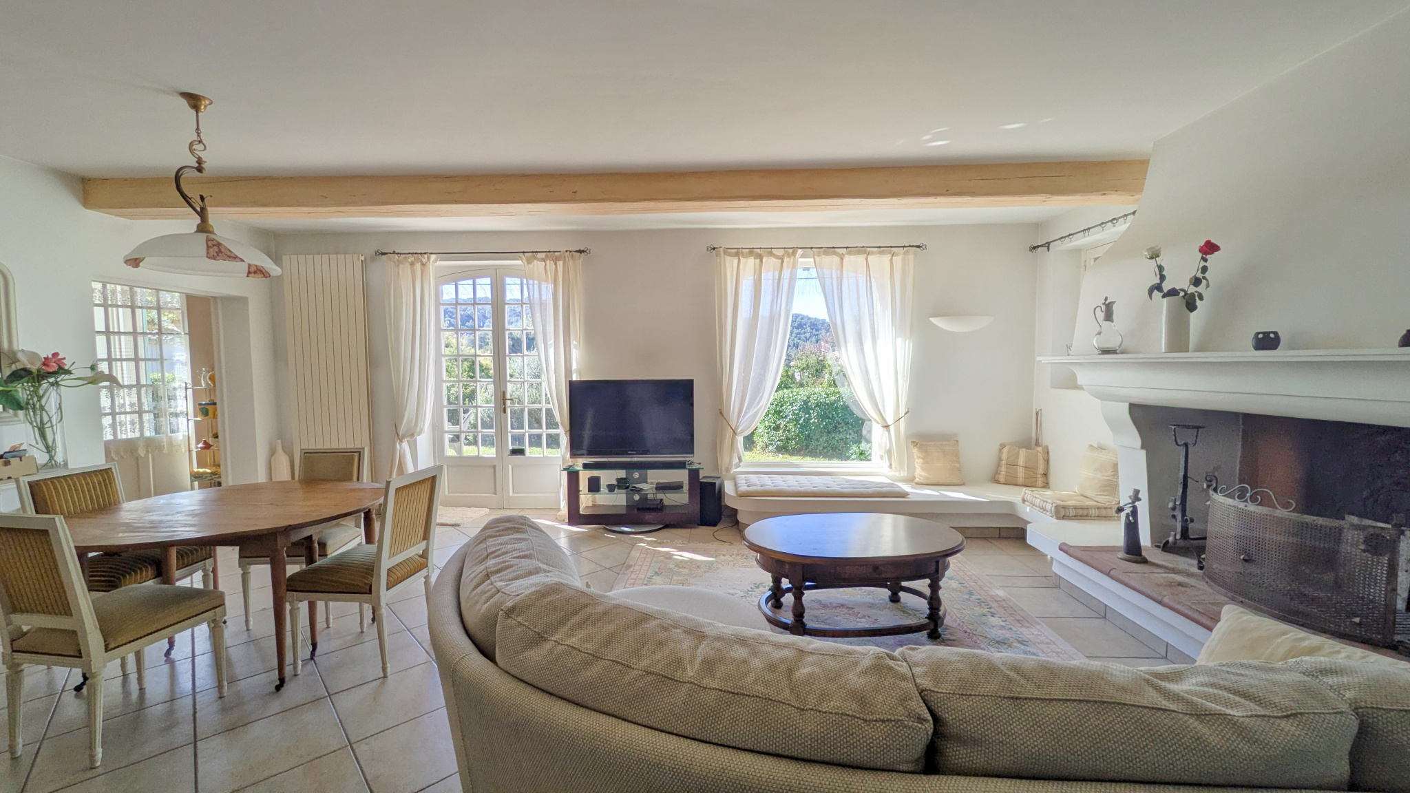 La jolie entrée dessert le séjour lumineux de près de 50m2 et la cuisine, le tout donnant sur la terrasse et sa vue dégagée sur le jardin, la piscine, et les collines en perspective. Vous bénéficierez de deux chambres avec chacune sa salle d'eau/bains, deux wc et une buanderie.