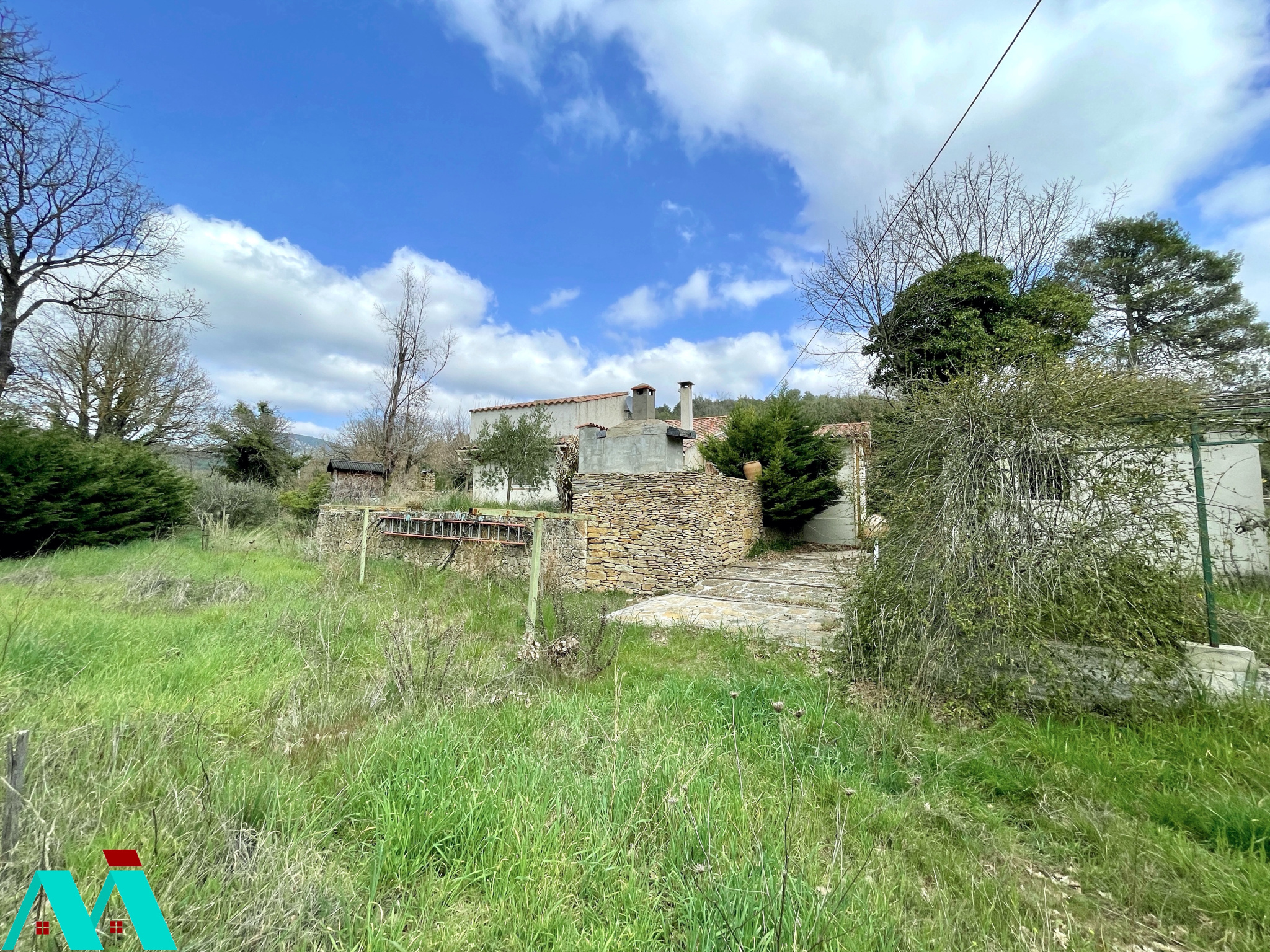Sur 2 935 m2 de terrain plat et clos, la maison offre environ 90 m2 de plain-pied, avec sa pièce de vie, un coin salle-à-manger avec cheminée, et une extension plus récente pour le coin salon et une salle d'eau avec toilettes.