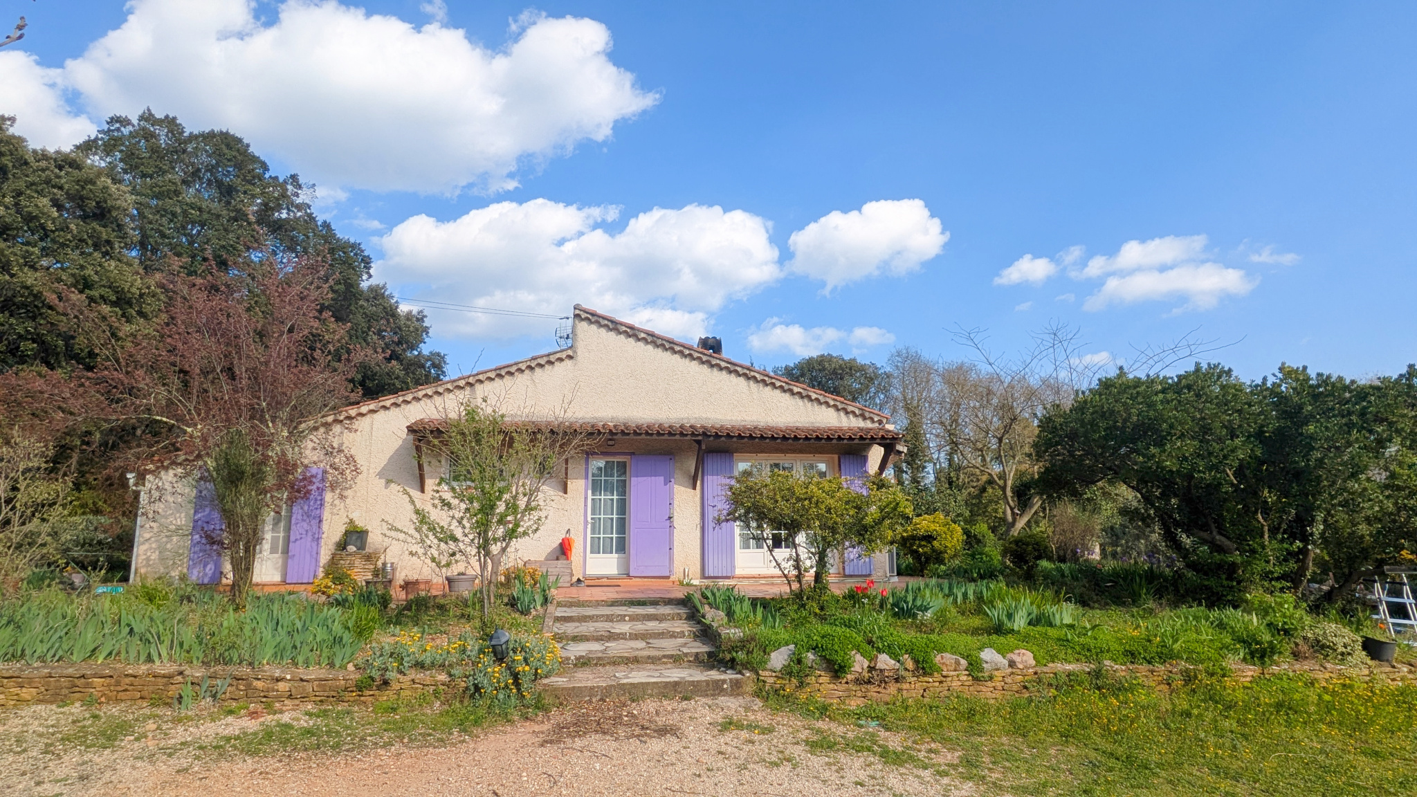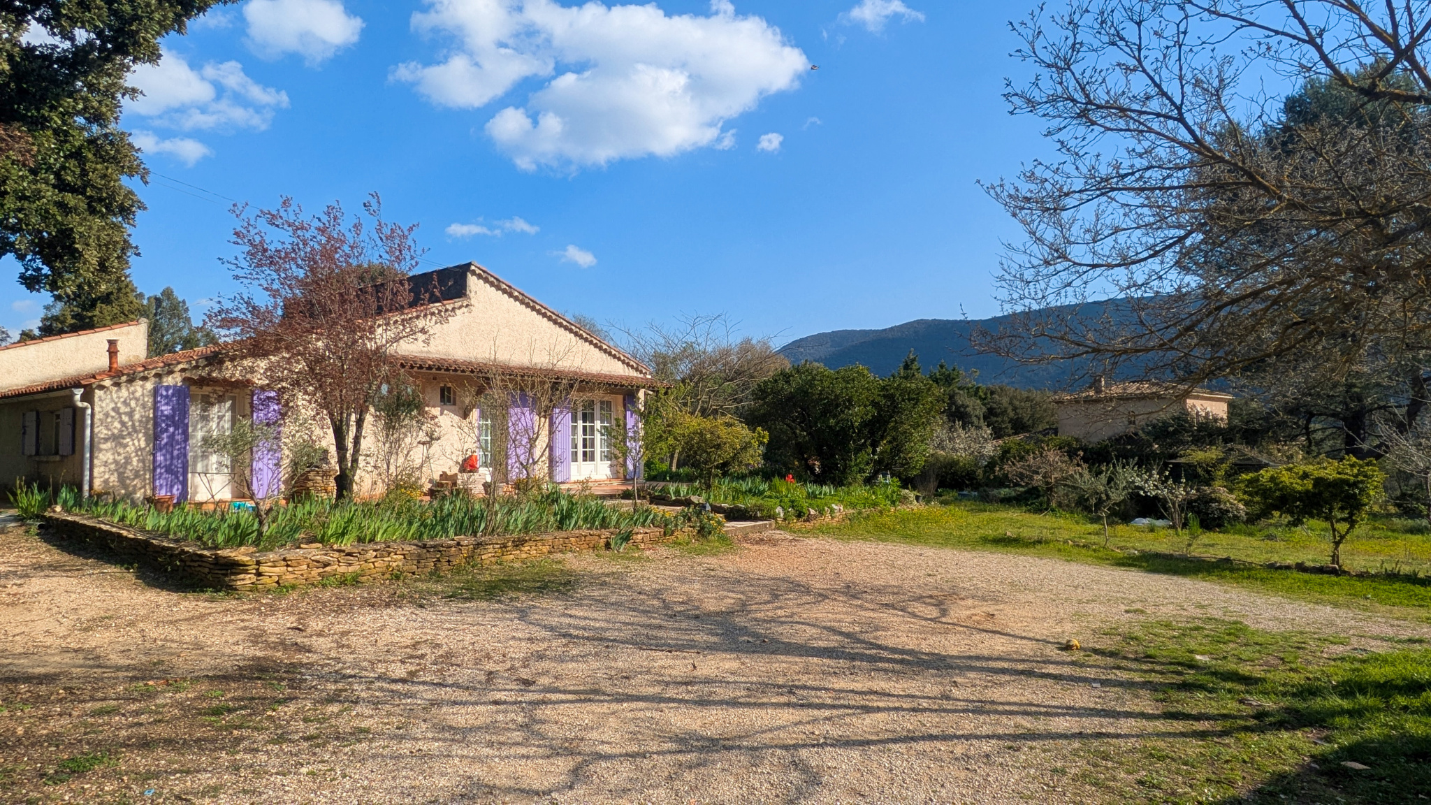 La propriété bénéficie de vrais atouts : terrain généreux, environnement résidentiel très agréable, en campagne, maison de plain-pied, construction traditionnelle, garage, stationnement aisé sur la parcelle, forage pour l’arrosage du jardin, ainsi qu’un studio indépendant.