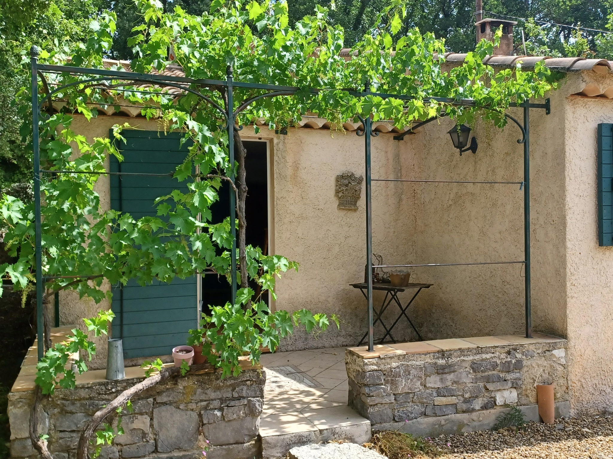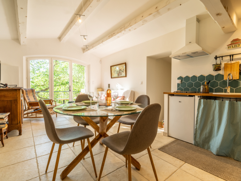 Au sujet des équipements, les fenêtres, fenestrons, porte-fenêtres, sont en bois et double vitrage. Les sols sont en terre cuite et carrelage pour le T4 et en carrelage et parquet flottant pour le T3. Le chauffage est mixte (bois et électrique). La maison est alimentée en eau avec le Canal de Provence qui est complétée d’une station de stérilisation. La production d’eau chaude est assurée par deux chauffe-eaux électrique (un pour le T4 et un pour le T3).