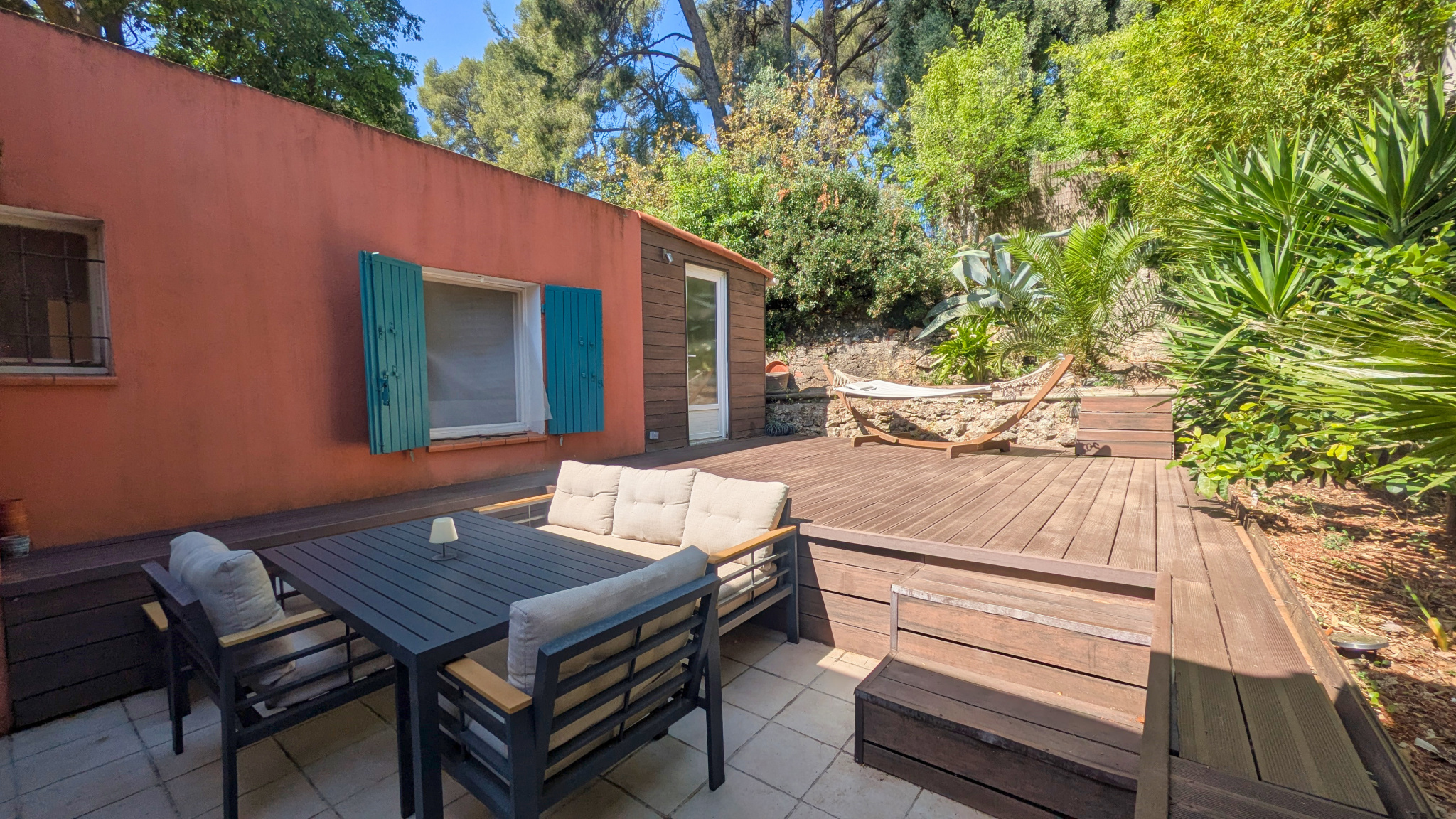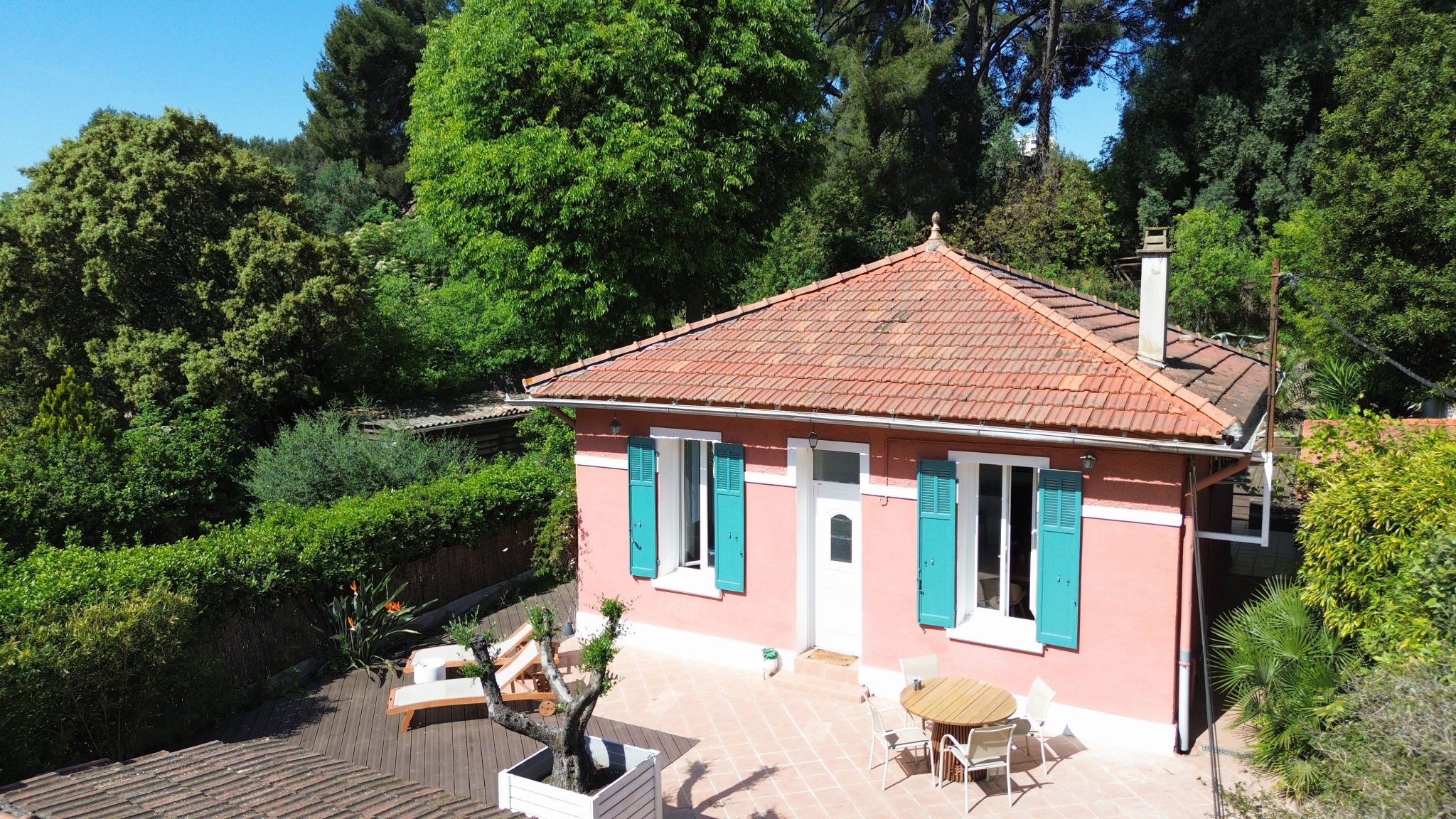 Édifiée sur un joli terrain d’environ 500 m2, la maison se découvre au milieu d’une végétation luxuriante, dans un cadre intimiste et plein de charme. Entièrement de plain-pied, elle a fait l’objet d’une rénovation soignée et propose aujourd’hui des prestations de confort dans un esprit à la fois actuel et chaleureux.